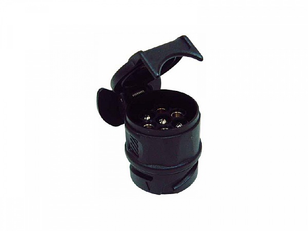 Адаптер-переходник 13 контактов на 7 контактов. Обеспечивает связь между фаркопом с 13-контактной розеткой и прицепом с 7-контактным штекером (разъемом).