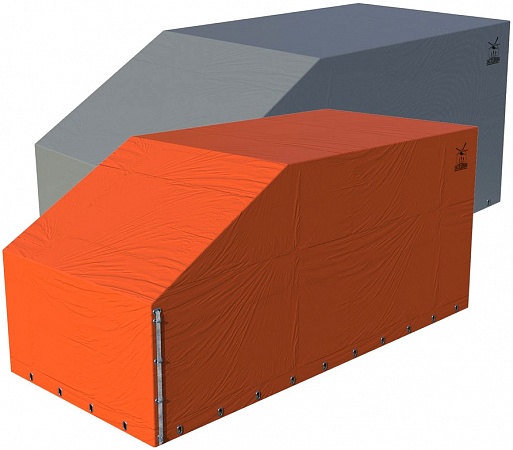 Тент выполнен из армированного материала с поливинилхлоридным покрытием, представляет собой текстильную основу с нанесенным на нее двухсторонним ПВХ-покрытием.