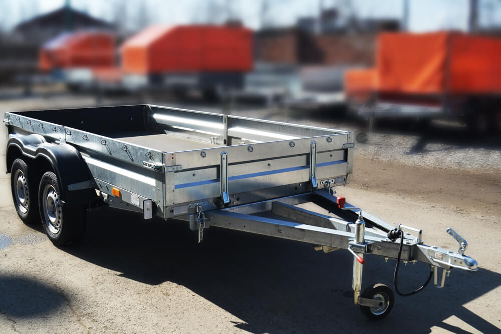 Универсальный двухосный прицеп, подходящий как для перевозки снегоходов, мототехники, так и  для транспортировки стройматериалов, мебели, грузов с высоким центром тяжести по асфальтированным дорогам. Благодаря двум осям прицеп более устойчив.