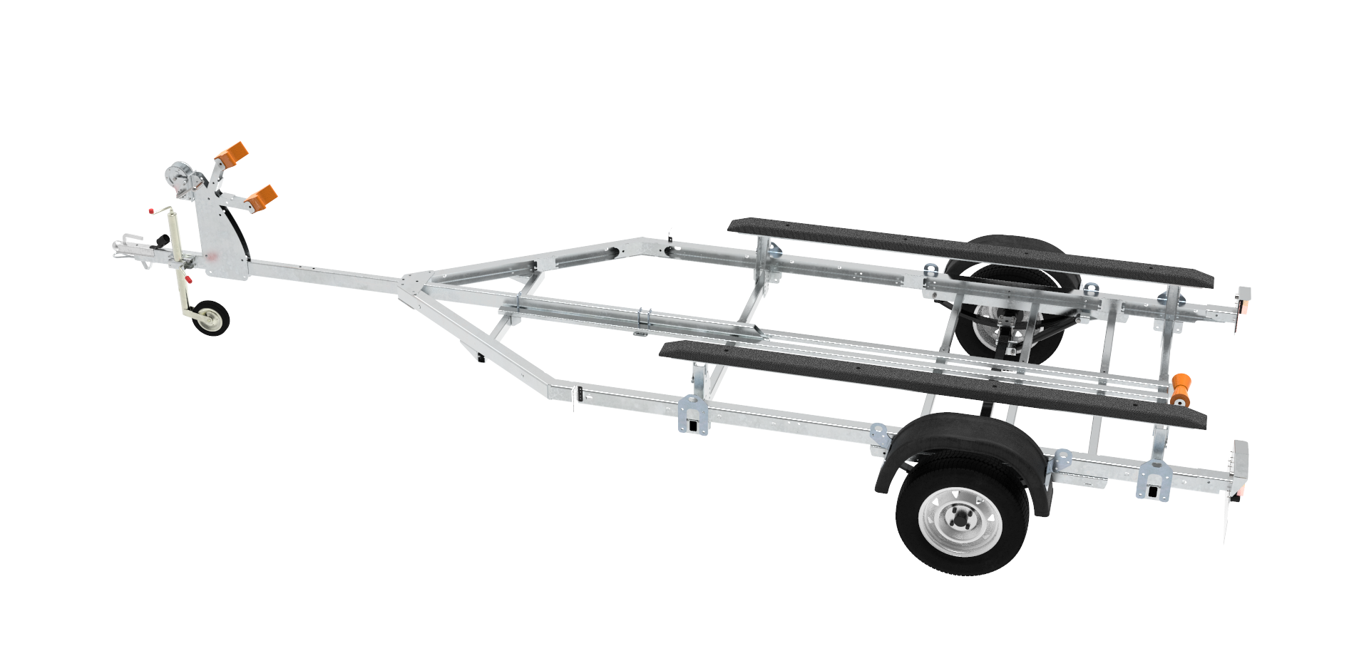 Изменяемое положение подвески (шасси) прицепа позволяет правильно распределить центр тяжести погруженного судна.